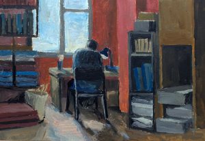 За работой, 2020, гуашь, бумага, 20х14 см