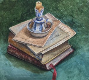 Книги, 2022, акварель, бумага, 29х26 см