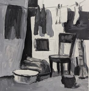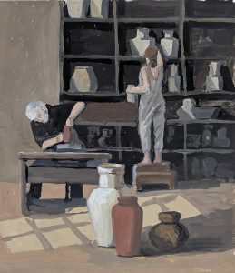 Гончарная мастерская, 2021, гуашь, бумага, 19х22 см