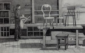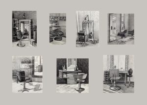 Стулья в парикмахерской, 2021, карандаш, бумага, 70х50 см