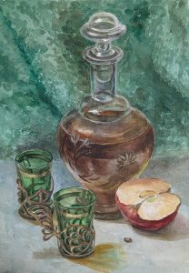 Графин и яблоко, 2014, акварель, бумага, 19х428см