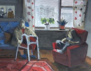 У печки, 2021, гуашь, бумага, 10х11 см