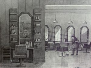 Парикмахерская, 2021, карандаш, бумага, 70х350см