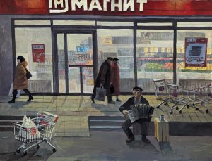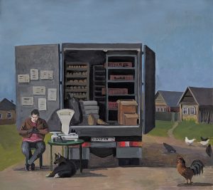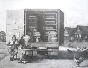 Магазин на колесах, 2021, гуашь, бумага, 55х49 см