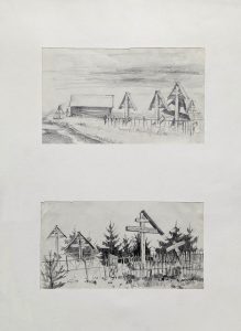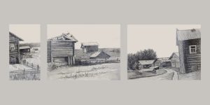 Деревня Кимжа, Виды, 2020, карандаш, бумага, 30х60 см