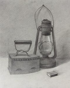 Утюг и лампа, 2020, карандаш, бумага, 50х58 см