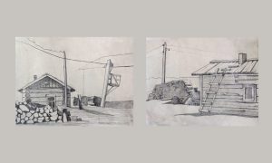 Дом Попкова в Кимжи, 2020, карандаш, бумага, 60х30 см