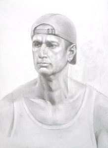 Мужчина в бейсболке, 2023, карандаш, бумага, 39х50 см