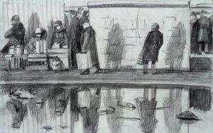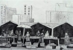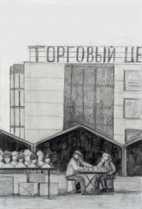 Зарисовка рынка 2020, карандаш, бумага, 19х12 см