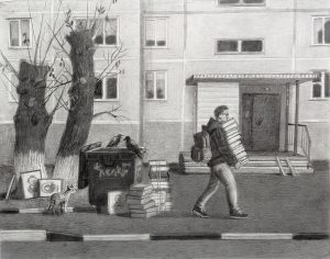 Переустановка ценностей, 2021, карандаш, бумага, 35х24 см. Участвовала в выставке «Черное и белое», НОГИНСКОЕ ОТДЕЛЕНИЕ ВСХР, 2024.