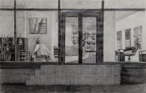 Вход в парикмахерскую, 2021, карандаш, бумага, 30х19 см