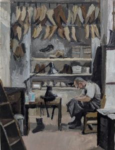 Сапожник, 2021, гуашь, бумага, 15х19 см