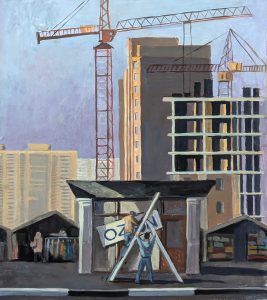 Работа в выходной, 2021, гуашь, бумага, 60х30 см