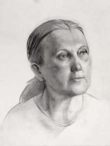Тяжелый удел, 2021, карандаш, бумага, 70х50 см. Участвовала в выставке «Черное и белое», НОГИНСКОЕ ОТДЕЛЕНИЕ ВСХР, 2024.