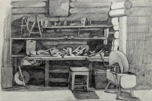 Деревенская мастерская, 2021, карандаш, бумага, 27х18 см
